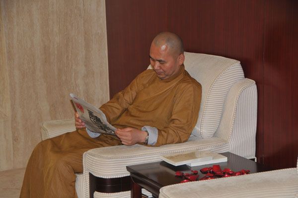 隆相法师在贵宾休息室内等待画展开幕式