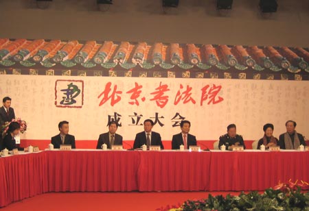 北京市委常委、宣传部部长、副市长蔡赴朝等领导同志,李铎、宋雨桂等文化艺术界知名人士,日本驻华使馆公使山田重夫以及书法院顾问、研究员共100多人参加了北京书法院成立大会。