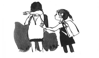 男孩子突然生气了,一转身,在走廊上跑了起来。他想从另外一扇门,不是秋代出来的那扇,进到教室里。