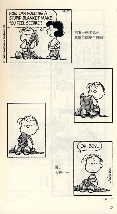 《史努比漫画》的人物解释了美国人信奉友谊,信奉团体,信奉正直美好,然而我们却被自己冷漠、鼓励和隔绝所包围——一种根深蒂固的孤立隔绝,体现在舒尔茨和他笔下的小家伙身上。