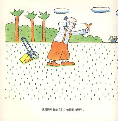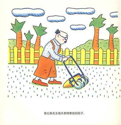 鲁拉鲁先生有一个让他很骄傲的草坪院子,谁要进来他都用弹弓打走。有一天,他看见一截圆木躺在院子里,刚要踢一脚发现是鳄鱼。他拿出弹弓,又害怕……