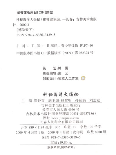 为了满足孩子们对海洋知识的渴望和好奇,使他们为海洋科技的发展做好充分的准备,作者特编辑了这本《神秘海洋大揭秘》。本书从海洋的诞生、海底结构、海港、海洋气候、海洋休闲、海洋生物、海洋资源、海洋环境、海洋之谜等几方面出发,全面介绍了海洋科普知识,揭开了海洋神秘的面纱,让您与海洋亲密接触!