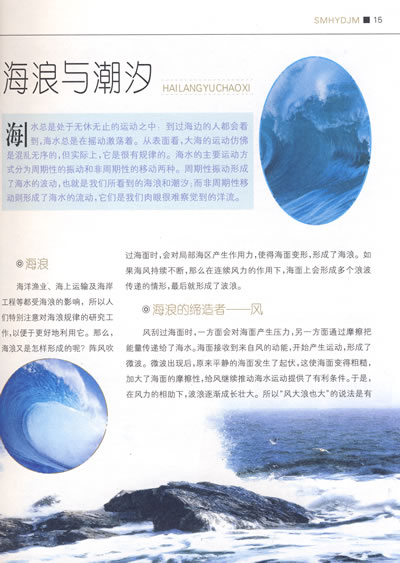 烟波浩渺的大海是那样令人向往,它时而风平浪静、温柔似水;时而波涛汹涌,浊浪滔天,充满了神奇的魔力,所以总是让人们着迷不已,总是想不断地探究其中的奥秘。随着科学技术的不断发展和进步,人类掌握了许多有关海洋的知识,对海洋的了解也已经越来越多,然而仍然有许多问题还有待于人们进一步的探索和挖掘,而这一重任则落到了广大青少年朋友的身上。