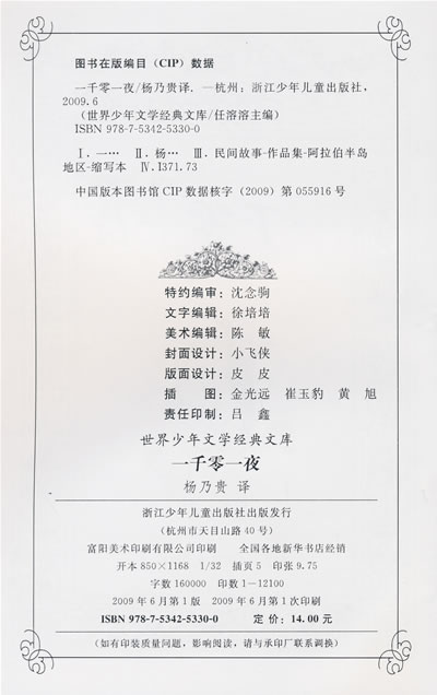 本书选收了《一千零一夜》中的二十几个故事。这些故事被公认为《一千零一夜》中最优秀、最受读者喜爱,也是流传最广的经典故事。为使广大少年儿童读者能在较短时间内享受阅读《一千零一夜》的乐趣,感知它的魅力,陶醉于它那奇妙的虚构与幻想之中,本书在翻译时,作了若干删节与整理,从而使结构更加严谨、主题更加鲜明、情节更加紧凑。在语言上也尽量做到通俗易懂,读起来朗朗上口。