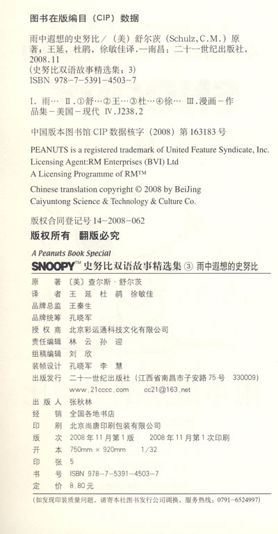 SNOOPY史努比双语故事选集 3 雨中遐想的史努比