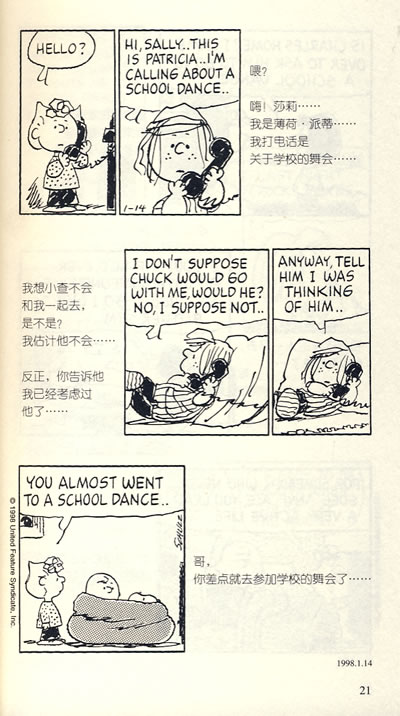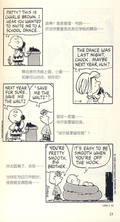 也许你不知道邻居家小狗的名字,可是你一定知道史努比——这只爱打字,喜欢吃冰激凌,却老是记不住主人名字的小狗,还有它的一大群朋友。史努比像是勇往直前,挺身反传统的梦想家;查理·布朗是在现实中屡战屡败,老是吃亏却不放弃希望的平凡小人物;露茜则像是盛气凌人,精打细算的老板。这些可爱的人物传达着“输了再来”的人生观与对窘况一笑置之的态度引起了广大读者的回响。所有喜欢史努比的朋友,这里的故事很精彩,千万不要错过哟!