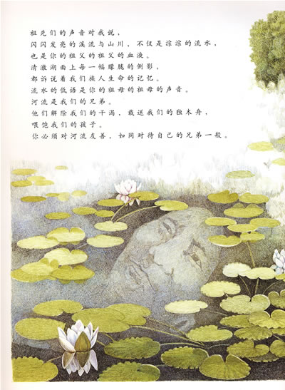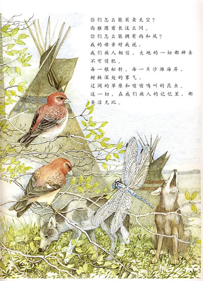 印地安人是美国的原住民,当时他们面对来自欧洲白人的入侵,最无法忍受的就是白人占地为王、破坏大自然的诸多行径,这本书摘自西雅图酋长在被迫把部落土地卖给美国政府时所发表的演讲内容,表达了原住民对大自然的敬爱与敬重,优美如诗的字里行间,流露出原住民与土地之间有如家人般深厚的情感。