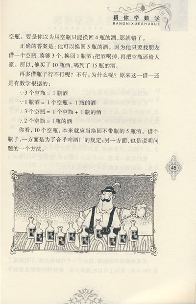 《帮你学数学》是献给少儿的礼物。用讲故事的方法把一些数学道理讲给小孩听,例如猴子吃栗子,朝四暮三,就不如朝三暮四,由此引出3+4=4+3等等,生动活泼。景中的作品一大特点是语言生动,由浅入深,富有启发性。但我觉得最引人入胜之处在于他的创造性,他的独到见解。