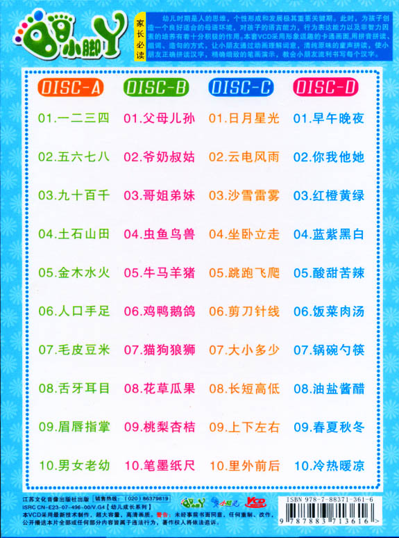 小脚丫系列:幼儿启蒙识字(4碟木盒装)