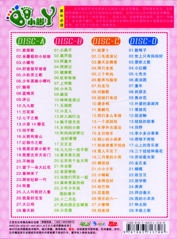 小脚丫系列:儿童歌伴舞少儿民族舞(4碟木盒装)