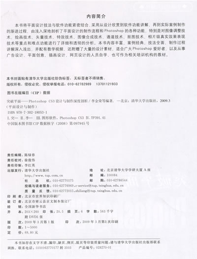 本书将平面设计技法与软件功能紧密结合,采用从设计欣赏到软件功能讲解、再到实际案例制作的渐进过程,由浅入深地剖析了平面设计的制作流程和Photoshop的各种功能,特别是对图像调整技术、绘画技术、矢量技术、特效技术、图像合成技术、通道技术、抠图技术、相片级真实效果表现技术等重点和难点功能进行了详细和透彻的分析。本书内容丰富、案例经典、技法全面、制作过程讲解深入浅出,并配有教学视频,还附赠了大量的设计素材,适合广大Photoshop爱好者,以及从事广告设计、平面创意、插画设计、网页设计的人员自学,也可作为相关培训机构的教材。