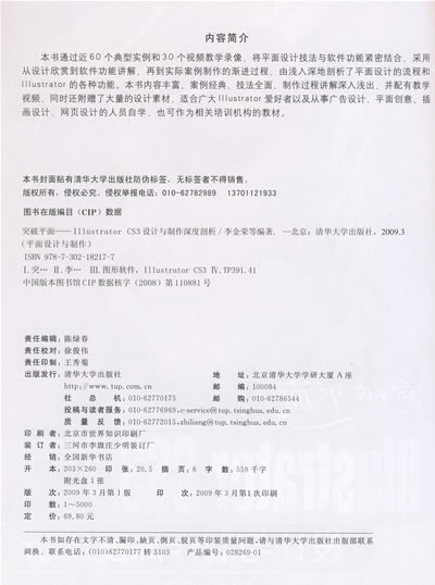 本书通过近60个典型实例和30个视频教学录像,将平面设计技法与软件功能紧密结合,采用从设计欣赏到软件功能讲解,再到实际案例制作的渐进过程,由浅入深地剖析了平面设计的流程和Illustrator的各种功能。本书内容丰富、案例经典、技法全面、制作过程讲解深入浅出,并配有教学视频,同时还附赠了大量的设计素材,适合广大Illustrator爱好者以及从事广告设计、平面创意、插画设计、网页设计的人员自学,也可作为相关培训机构的教材。