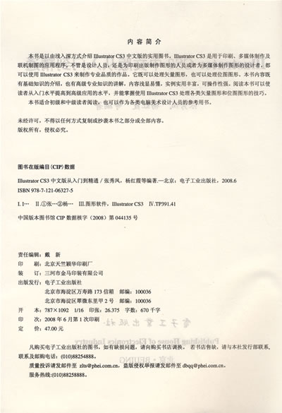 本书是以由浅入深方式介绍Illustrator CS3中文版的实用图书。Illustrator CS3是用于印刷、多媒体制作及联机制图的应用程序。不管是设计人员,还是为印刷出版制作图形的人员或者为多媒体制作图形的设计者,都可以使用Illustrator CS3来制作专业品质的作品。它既可以处理矢量图形,也可以处理位图图形。本书内容既有基础知识的介绍,也有高级专业知识的讲解,内容浅显易懂,实例实用丰富,可操作性强。阅读本书可以使读者从入门水平提高到高级应用的水平,并能掌握使用Illustrator CS3处理各类矢量图形和位图图形的技巧。