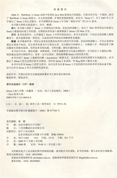 本书可以作为Struts 2的学习用书,也可以作为从事Struts 2开发的程序员的参考用书和必备手册,还可以作为Struts 2官方文档的有益补充。