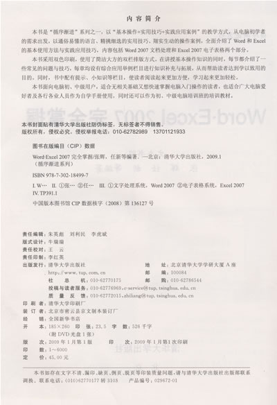 本书是“循序渐进”系列之一,以“基本操作+实用技巧+实践应用案例”的教学方式,从电脑初学者的需求出发,以通俗易懂的语言、精挑细选的实用技巧、翔实生动的操作案例,全面介绍了Word和Excel的基本使用方法与实践应用技巧,内容包括Word 2007文档处理和Excel 2007电子表格两个部分。