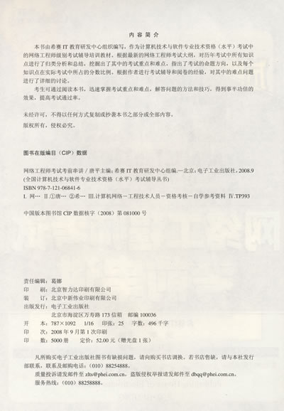 权威,购买本书,请放心使用——希赛是中国领先的互联网技术和IT教育公司,在互联网服务、图书出版、人才培养方面,希赛始终保持IT业界的领先地位。希赛IT教育研发中心是希赛公司属下的一个专门从事IT教育、教育产品开发、教育书籍编写的部门,在IT教育方面具有极高的权威性。希赛IT教育研发中心的远程教育模式得到了教育部门的认可和推广,特别是在系统分析、需求分析、架构设计和项目管理的人才培养方面,有口皆碑。同时,在高端课程方面,希赛IT教育研发中心开设的课程有软件工程系列、项目管理系列、企业管理系列,,以及网络安全系列课程。