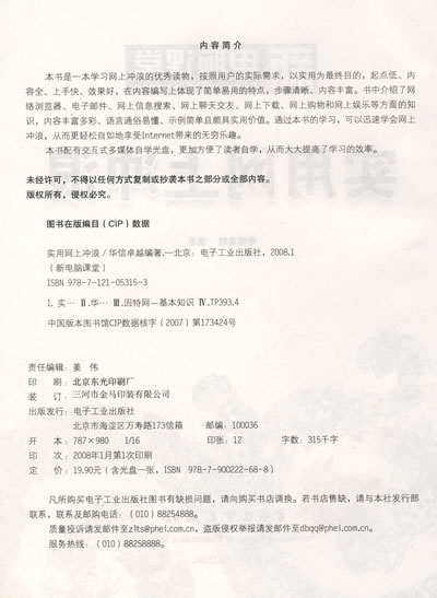 本书是一本学习网上冲浪的优秀读物,按照用户的实际需求,以实用为最终目的,起点低、内容全、上手快、效果好,在内容编写上体现了简单易用的特点,步骤清晰、内容丰富。书中介绍了网络浏览器、电子邮件、网上信息搜索、网上聊天交友、网上下载、网上购物和网上娱乐等方面的知识,内容丰富多彩、语言通俗易懂、示例简单且颇具实用价值。通过本书的学习,可以迅速学会网上冲浪,从而更轻松自如地享受Internet带来的无穷乐趣。