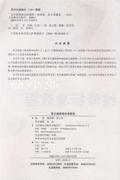 本书分三篇,即显示器基础、CRT显示器维修和液晶显示器维修。全书从CRT显示器的基础知识入手,以目前流行的采用I2C总线控制的大屏幕显示器为主线,深入浅出地介绍了显示器的电源电路、扫描系统电路、视频电路和微处理器电路的原理与检修方法,同时介绍了新型多频显示器和液晶显示器的电路原理和电路分析方法及检修技巧。