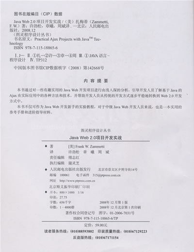 本书中,世界级专家通过7个极具实战价值的Web 2.0项目(包括对Gnmail、Flickr的模仿实现,以及网摘、聊天程序和纯Ajax游戏等),直观而生动地展示了。Java平台上Ajax相关的各种技术的综合运用,涉及Apact"le、Ant、AjaxTags、Struts、Prototype、DWR、Dojo等。每个项目都完整地讲解了从规划、设计到实现的全过程。并提供全部代码。这些项目不仅是很好的实战学习资料。其中很多内容还可以直接应用到自己的项目中,为你节省大量开发时间。