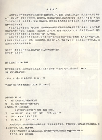 本书可作为计算机软件专业本科生、研究生和软件工程硕士的软件需求分析教材,也可以作为软件工程、软件开发管理培训的教材,更是一线项目经理、需求分析人员、资深开发人员、信息系统运行管理人员、研发企业管理人员的必备参考书。
