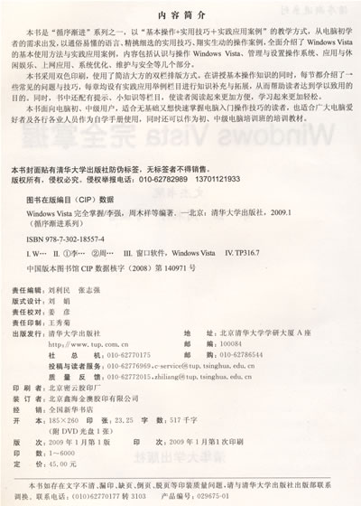 本书是“循序渐进”系列之一,以“基本操作+实用技巧+实践应用案例”的教学方式,从电脑初学者的需求出发,以通俗易懂的语言、精挑细选的实用技巧、翔实生动的操作案例,全面介绍了Windows Vista的基本使用方法与实践应用案例,内容包括认识与操作Windows Vista、管理与设置操作系统、应用与休闲娱乐、上网应用、系统优化、维护与安全等几个部分。