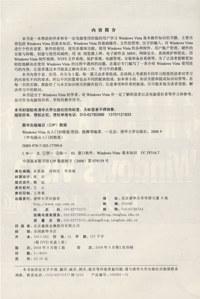 本书适合于Windows Vista初学者、对Windows Vista有一定了解的读者以及电脑爱好者等学习和参考,也可作为电脑培训班、学校的教学用书。
