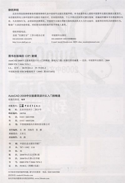 本书从实际应用的角度出发,精选了众多的建筑设计案例,按照AutoCAD相关设计参数、模块进行分类,详细介绍了各种建筑绘图的设计流程,所涉及的规范和标准,以及在设计过程中应用到的命令和技巧。这些图纸包括建筑平面图、建筑立面图、建筑剖面图、建筑结构详图、室内布置详图、给排水施工图、电气照明图、采暖图、装饰工程图以及鸟瞰图等各类图纸,旨在帮助广大工程设计人员在实际应用中能够迅速提高建筑设计应用水平和AutoCAD软件的实际操作能力。
