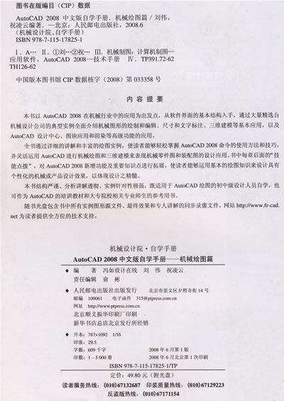 本书以AutoCAD 2008在机械行业中的应用为出发点,从软件界面的基本结构入手,通过大量精选自机械设计公司的典型实例全面介绍机械图形的绘制和编辑、尺寸和文字标注、三维建模等基本应用,以及AutoCAD 设计中心、图块应用和渲染等高级功能的应用。