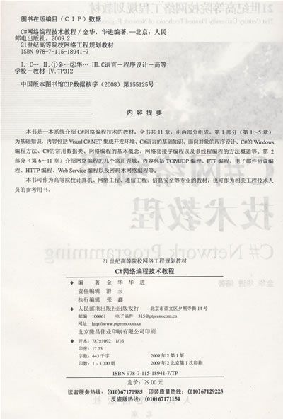 侧重编程基本思路和方法,强调C#网络开发技术,循序渐进引用典型案例。