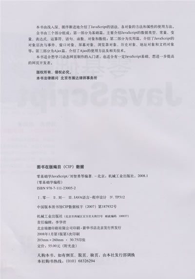 本书由浅入深、循序渐进地介绍了JavaScript的语法、各对象的方法和属性的使用方法。