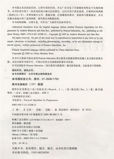 如今大多数关于算法的图书都是大学教科书,或者是令人厌倦的相同算法集合改头换面后的作品。本书是给出所有算法的完整代码实现的第一本书,这些算法在开发人员的日常工作中非常有用。