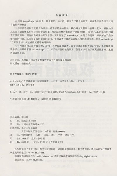 本书将ActionScript 3.0作为一种全新的、独立的、具有自己特色的语言,系统全面地介绍了此语言的结构和概念。