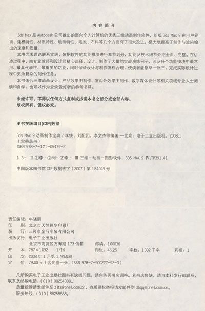 依据软件的功能模块划分部分和章节,系统深入地剖析3ds Max9的强大功能,循序渐进地讲述进行三维动画建模、材质编辑、动画设计、灯光设置和渲染输出等的方法和技巧。理论联系实际,通过专业教师精心选择、设计的精彩实战演练,帮助读者在学习知识点的同时快速掌握实用技能。