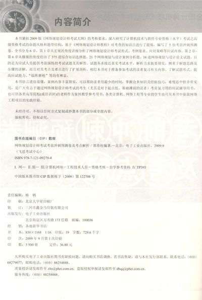 本书语言通俗易懂,案例内容丰富翔实,可以帮助读者用最少的时间,掌握众多知识及经验技巧,难度适中但非常实用,是广大有志于通过网络规划设计师考试的考生(尤其是对于起点低、基础薄弱的读者)考前复习用的应试辅导用书,也可供各类高等院校(或培训班)的老师作为案例教学参考用书,各类计算机、网络工程等专业的学生也可从本书中获取网络工程项目的实践经验。