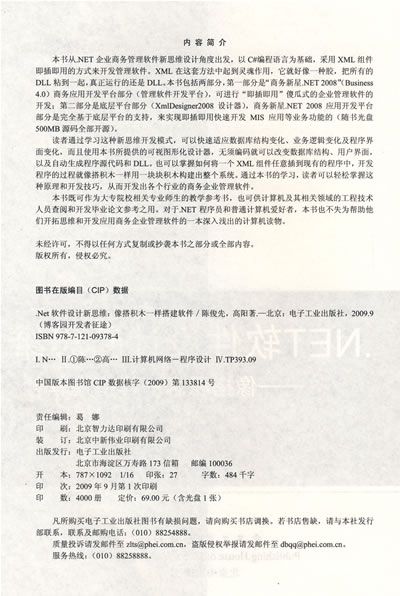 本书既可作为大专院校相关专业师生的教学参考书,也可供计算机及其相关领域的工程技术人员查阅和开发毕业论文参考之用。对于.NET程序员和普通计算机爱好者,本书也不失为帮助他们开拓思维和开发应用商务企业管理软件的一本深入浅出的计算机读物。