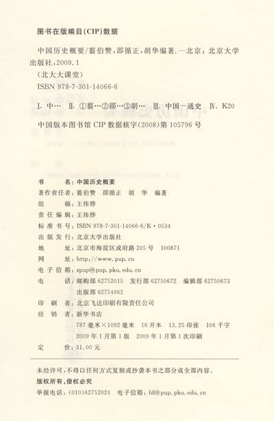 中国是世界上文化发达最早的国家之一。它有悠久的丰富的历史。本书编写目的在于简要地介绍中国历史,从而看出中国社会发展过程的轮廓。本书分三个部分:古代的中国、近代的中国和现代的中国。整个中国历史说明,中华民族是一个有光荣革命传统和优秀历史遗产的民族。