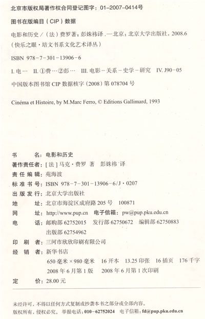 电影,作为真正的历史代言人,以其独特的方式发挥着作用。今后,史学家们会懂得,电影能通过其鲜明的话语,使人探知言下之意;并且,无论纪实的还是虚构的,电影都构成了一座毋庸置疑的资料宝库。从《大幻灭》到《拉孔布•吕西安》、从《犹太人苏斯》到《第三个人》、从《M》到《共荣之路》,马克·费罗展示了历史与电影之间的种种相互介入,从而使我们更好地了解现代和古代社会。
