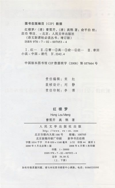 出版单位:人民文学出版社