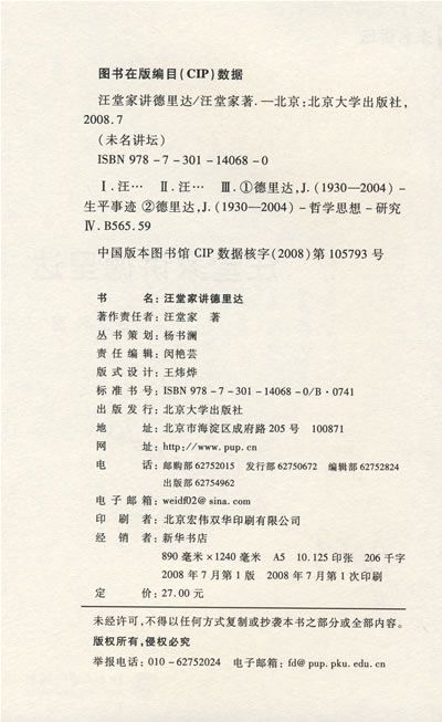 德里达的著作的确是晦涩的,这不仅表现在他自创了不少术语,而且表现在他故意采取一种“抵制翻译”的写作方式,好用隐喻以及用同一个词同时表示多种意义就是它的突出表现。幸运的是,除旅居法国的高宣扬先生外,作者国学界同人,如,杜小真、尚杰、冯俊、张志伟、张旭、杨大春、佘碧平、张宁、刘国英、陆扬、汪民安、赵兴国、陈永国、于奇智、钱捷、方向红、肖锦龙、朱刚、夏可君、周荣胜、胡继华以及其他作者无法一一列举的学者,已经在汉语学界做了值得作者个人好好学习的相关工作。他们或翻译或介绍或组织一些相关学术活动。他们的观点可能不同,视角可能有别,但他们的名字已经代表了不畏艰涩的努力。作者希望,作者的这本迟到的小书能稍稍增进作者国读者对德里达的艰深思想的进一步理解。尽管作者试图按编辑的要求写得尽可能通俗些,但由于自己尚未达到自由的境界,离通俗的目标还有一段距离。因此,作者善意地建议一些讨厌抽象的读者可以跳过抽象味道比较浓的第二章和第三章。作者还要说明的是,本书的一小部分文字曾发表在《文汇读书周报》,《天津社会科学》、《河北学刊》和《同济大学学报》上,但做了一些必要的增删。作者感谢它们为传播思想提供宝贵的园地。