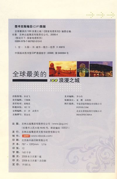 《图说天下——国家地理系列》丛书共10册,以广阔的视角从不同方位展现出国家地理文化最全面的内容,带领读者对国家地理文化进行一次全方位的接触。1500多个绚丽多彩的地理景观,4000余幅美轮美奂的摄影图片,260万字10卷本的人文地理巨著,编织出一次穿越时空的梦幻之旅。 本书将所有的怀念,所有的梦想,所有的旅行都统统化为婉约的文字和精美的图片,带你走进一个个华美或梦幻的城市。全书分为7个章节,从容优雅的行文,300多帧插图,从不同角度出发,深入浅出地向读者介绍了世界上100个最富有浪漫色彩的城市。100个城市,100种爱,或华美,或梦幻,或痴狂,或宁静,或美丽,或圣洁,或永恒,总有一些会深深地铭刻在我们心中,总有一些会让我们恋恋不舍。