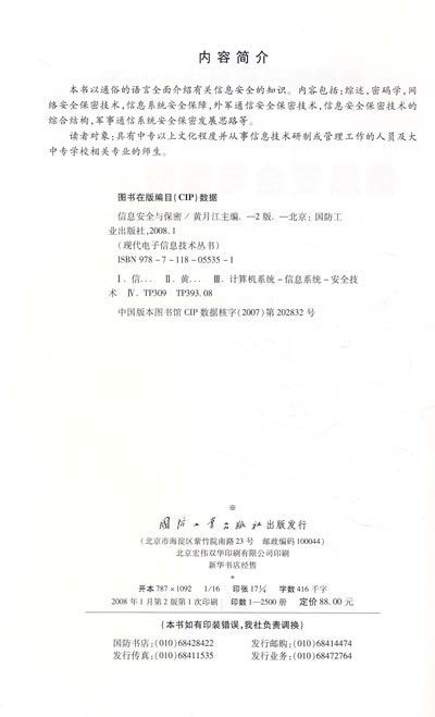 本书以通俗的语言全面介绍有关信息安全的知识。内容包括:综述,密码学,网络安全保密技术,信息系统安全保障,外军通信安全保密技术,信息安全保密技术的综合结构,军事通信系统安全保密发展思路等。