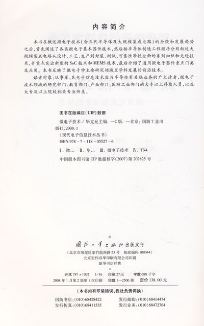 读者对象:从事军、民电子信息技术及与半导体有关联业务的广大读者,微电子技术领域的研究部门、教育部门、产业部门、国防工业部门的大专以上科技人员,以及大专及以上院校相关专业师生。