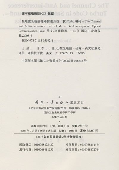 The book, with a name of "The Channel and anti-interference Turbo code in satellite-to-ground optical communication links", is based on a set of lecture notes prepared for a first-year graduate course on the principle and technology of optical communication links, given in the University of Electronic Science and Technology of China (UESTC) for the past several years. Lots of contents (especially refer to the theory and theoretic model) in this book are excerpted from the published references which were vended by the experts and scholars in domestic and overseas. This book labels the references cited as much as possible. However, because of restriction of different reasons, it is difficult to ensure that there is no omission and error, and hope learners of insight to criticize and make comment.