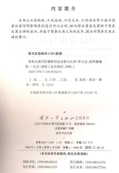 本书从不同侧面、不同层面、不同文体、不同语体等方面对商务汉英写作修辞异同进行对比分析,继而得出有益或有助于商务汉英互译的启示,并基于商务汉英之间的差异,提出对商务汉英互译的警示。