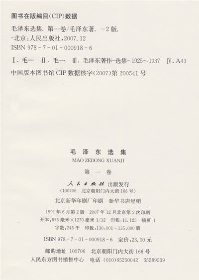 第四,本选集有两种装订的本子。一种是各时期的著作合订的一卷本,另一种是四卷本。四卷本的第一卷包括第一次国内革命战争时期和第二次国内革命战争时期的著作;第二卷和第三卷包括抗日战争时期的著作;第四卷包括第三次国内革命战争时期的著作。