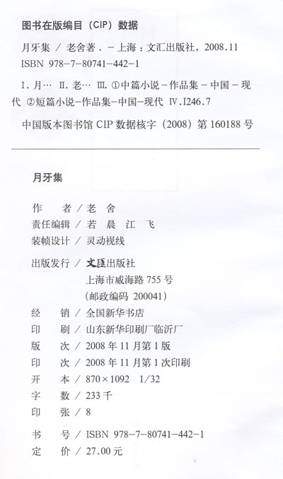 为纪念老舍诞辰110周年,隆重推出《老舍小说精汇》。本书为系列之一,收录的是老舍的代表作之《月牙集》。