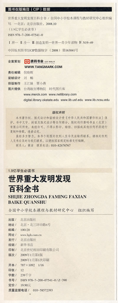 400个精心选编的知识条目,500幅鲜明震撼的精美彩图,带领您回顾影响人类文明进程的重大发明和发现,感受创造者们的惊人才华与智慧,走进异彩纷呈的百科世