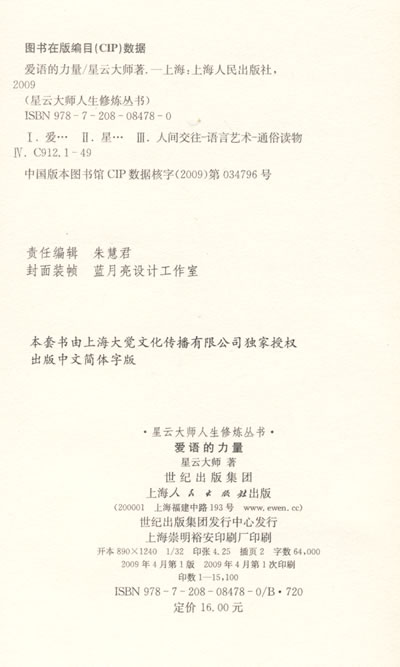 生活在都市里的人们是浮澡的,人们常常被眼前的利益所迷惑。本书通过一系列富有哲理的故事,讲述了如何让人欢喜的道理。本书稿是“星云大师人生修炼”系列丛书之一,主题为说话的艺术。“爱语”可以成就无量的好事、好因与好缘;“乌鸦嘴”的无礼之语,势必毁掉大好前途。大师提倡“说好话”运动,让每一句话都像芬芳的花香、美妙的音乐让人欢喜,“说好话,慈悲爱语如冬阳,鼓励赞美,就像百花处处香”,用善良的语言、慈悲的语言,促进社会的和谐。
