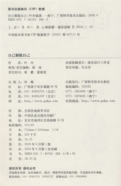 此书是目前自己帮助自己解决心理问题的权威性有效读本。希望它对你和你的家人、朋友有所帮助!
