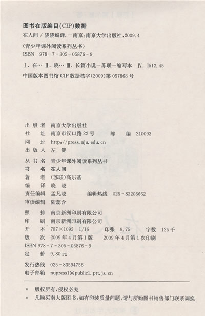 推荐理由《童年》《在人间》《我的大学》是伟大的前苏联作家高尔基的“自传体三部曲”。“自传体三部曲”是高尔基文学遗产中最优秀的部分之一。在这些作品中,高尔基根据早年的生活经历,真实描绘了19世纪70年代至90年代俄罗斯社会生活的全貌,展示了充满残酷、野蛮、愚昧、污秽的令人窒息的生活,表现了一代新人反抗黑暗、奴役,追求自由、光明的崇高理想。本书是高尔基自传体小说三部曲中的第二部,描述了1871年到1884年主人公阿廖沙,以及普通俄国人的困苦生活和日常苦闷,反映了俄国工业资本主义成长引起的小资产阶级手工业的瓦解过程。
